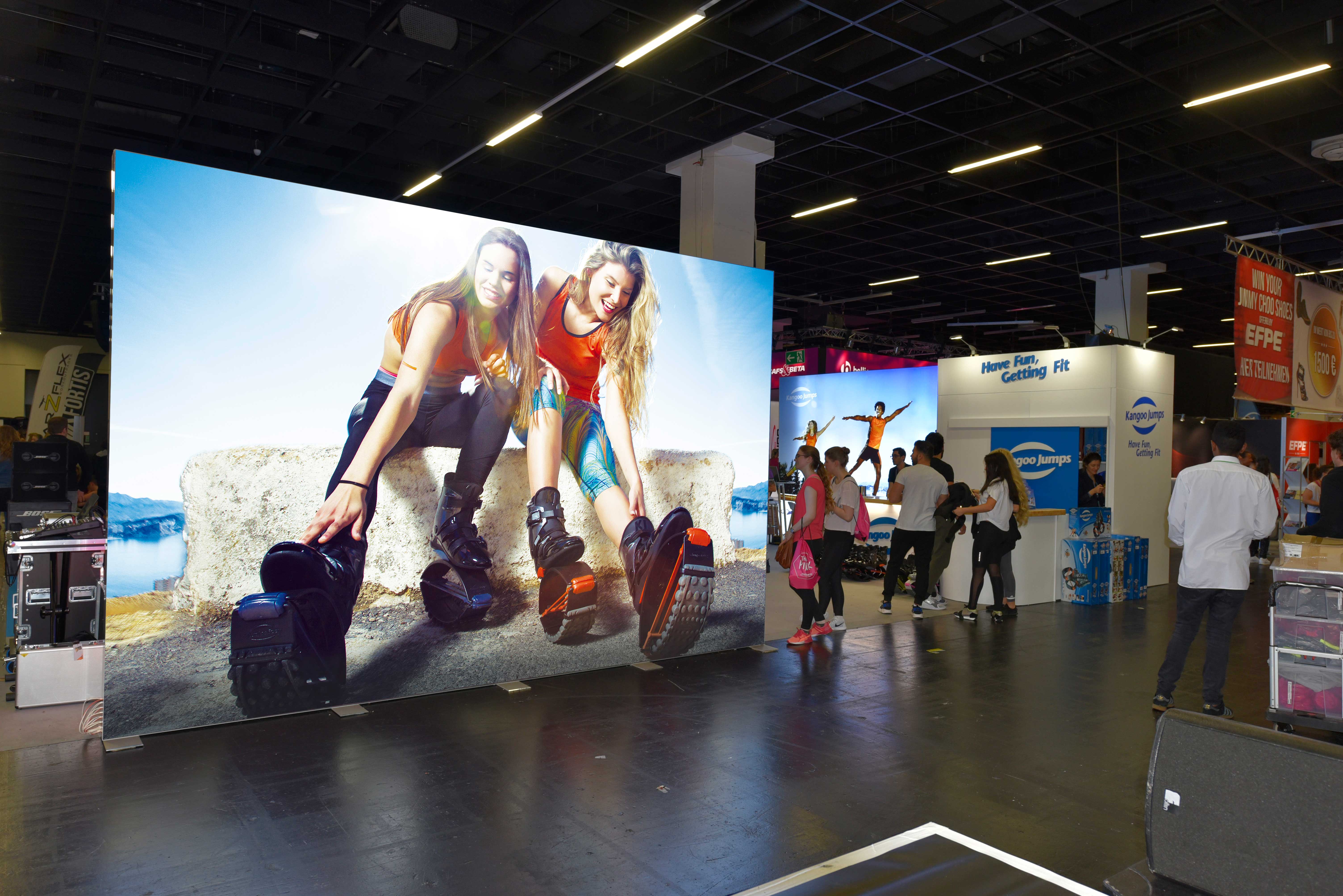 匯百美拉布燈箱與西班牙展會合作之雙面拉布燈箱案例案例說明:160mm雙面卡布燈箱,采用熱轉印畫面,高亮顯示畫面的真實色彩,雙面燈箱的特色是:一個燈箱,兩個廣告,將廣告范圍擴大化,充分利用空間,廣告效益